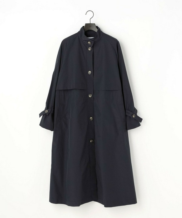 綿のカジュアル感がマッチしているスタンドカラーのトレンチコート。