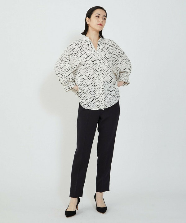 ニュアンスのあるMOGAオリジナルのドット柄のブラウス。