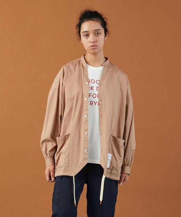 無地のシャツアウターは柄や癖のあるアイテムとも合わせやすい便利な一枚です。