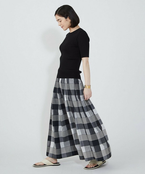 繊細で立体的な表情感が印象的なモノトーン・チェックのスカートは