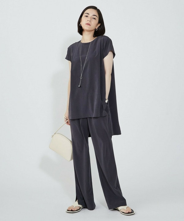 パンツは裾に入ったスリットが足元の軽快さと華やかをプラス!