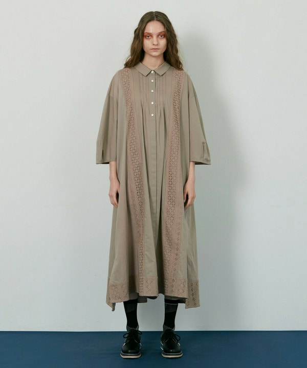 七分袖のシャツワンピを羽織としてつかったコーディネート。
