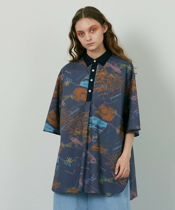 今回のテーマになっているドゥブロブニクを繊細な線画とカラフルな色で表現したオリジナルのシャツを使ったコーディネートです。