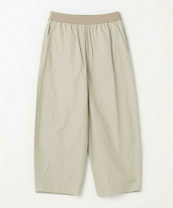 袖のひらひらと揺れるシルエットが涼しげなレーヨンリネンのブラウス。大きめの襟と、少しカーブしたエアリータフタパンツが大人のカジュアルを上品に演出してくれます。ウエストゴムのパンツはトップスをインして、ウエストマークをするのもおすすめです。