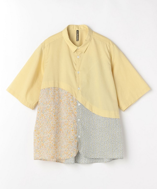 2種類の小花柄と無地の綿素材を組み合わせたシャツブラウス。