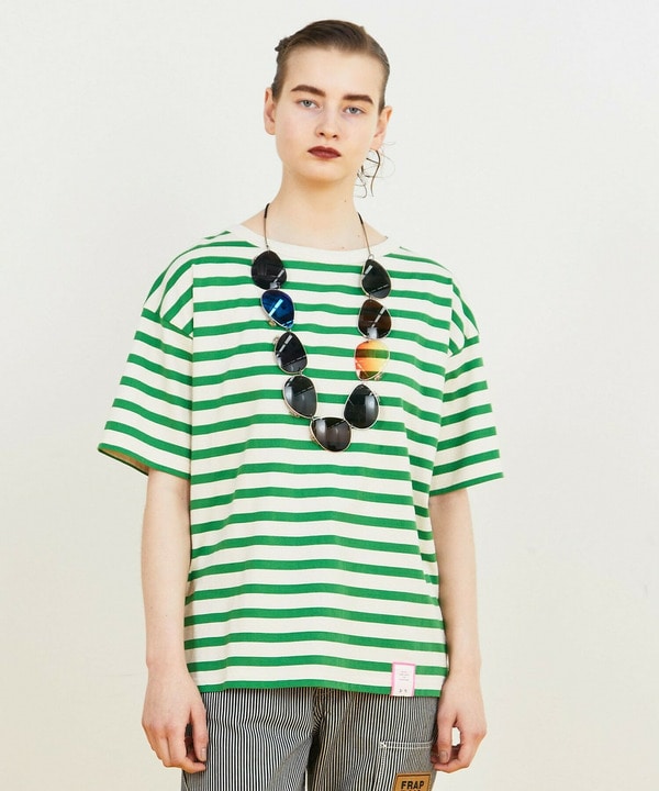 爽やかなグリーンのボーダーにホワイトデニムが涼しげな夏のオススメコーディネートです。