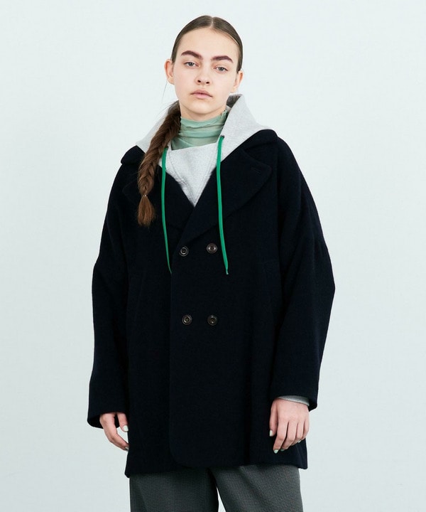 ウール混のハーフコートとデザインパンツでセットアップ風にコーディネートしました。差し色にニットのイエローとトートバッグのブルーを入れて、暗すぎずメリハリのあるコーディネートになりました。