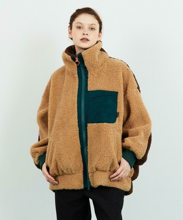 毎年人気のアウター「モコゾン」、今年は前後のバイカラーで登場しました。モコモコしたかわいらしい見た目と、アウトドアテイストの形がどんな物とも相性◎スッキリとした細身のパンツと合わせて、大人っぽく着ました。