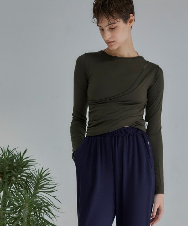 大人な印象のカーキとブラックでまとめたヨガウェアの上から、明るい印象のベージュのMA-1を合わせて冬場も華やかになるコーディネート。