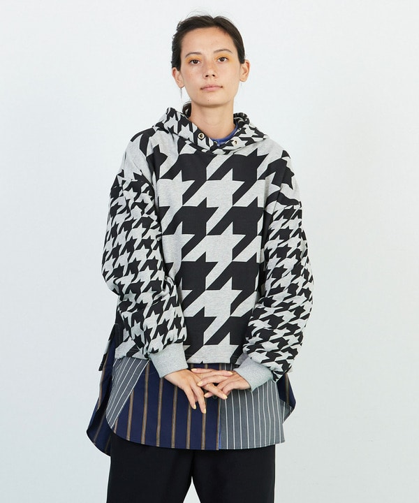 カジュアルな千鳥格子のパーカーをワンピースと組み合わせて大人カジュアルにしてみました。