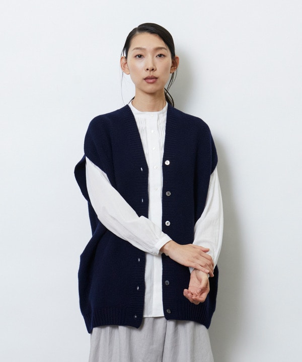 軽くて柔らかい素材感✨ボトムを選ばない着丈✨前あき✨昨年に引き続き、今年も登場のベストは新色のネイビーがおすすめです。