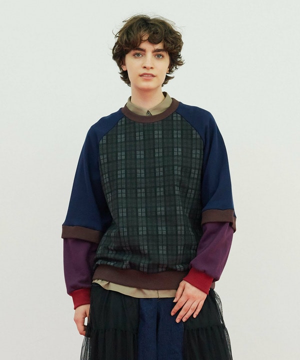 チェック柄やカラフルなパーツ等、色々な要素がミックスしたトレーナーを着ました。