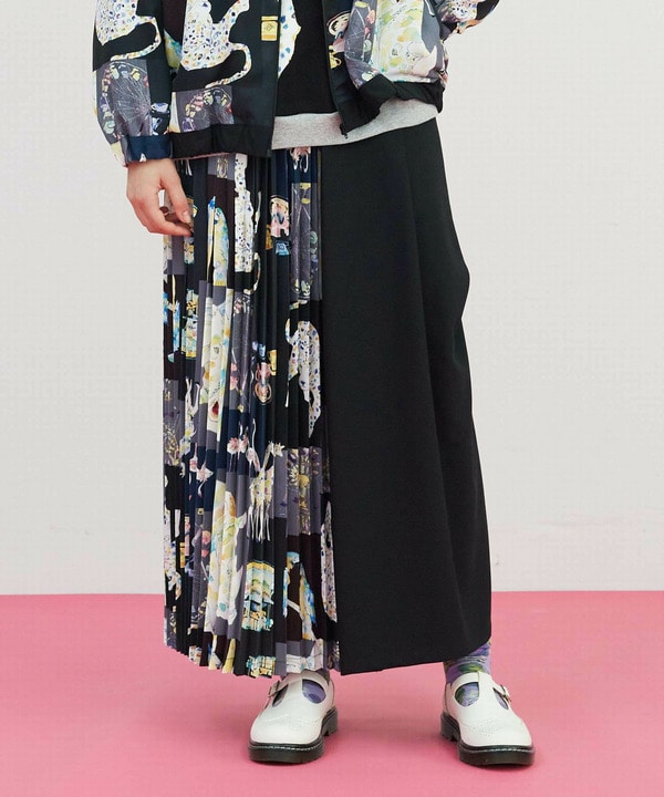 インナーには総柄の中から抜粋されたサイとオオムのイラストが描かれたモックネックTを着用しました。