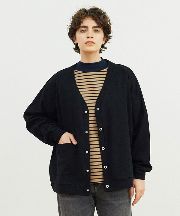 スナップボタンが特徴のカーディガンもワイドな作りなのでストレスなく着れます。