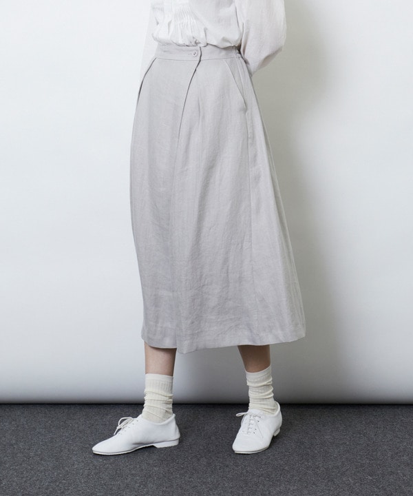グレーの巻き風スカートを合わせてキレイ目カジュアルスタイルの完成!