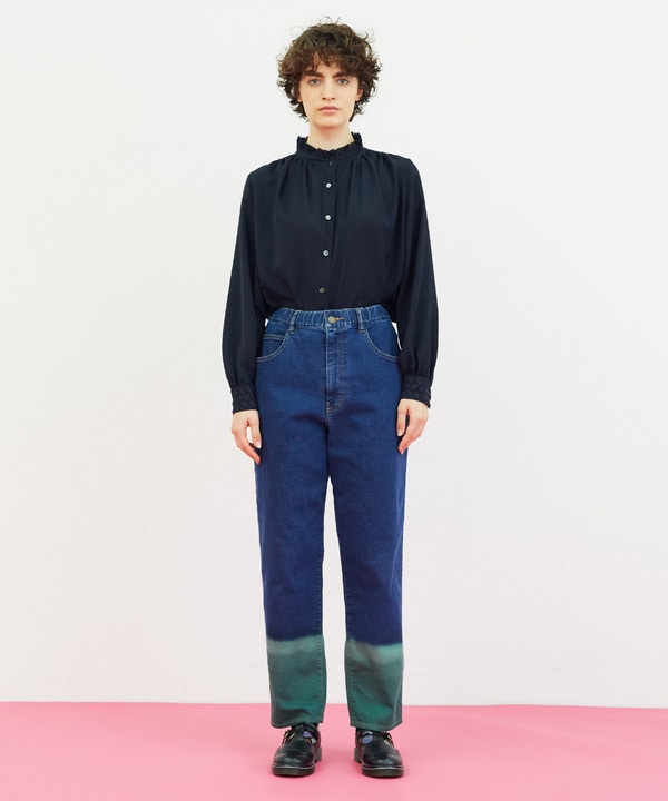 前を閉めるとウエストが絞れてスッキリとした印象に。