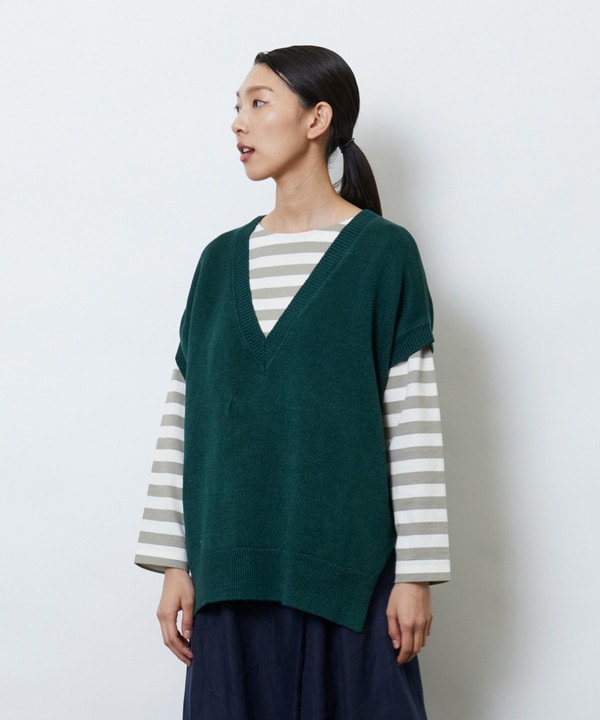 コットンリネン裏パイル編みベスト