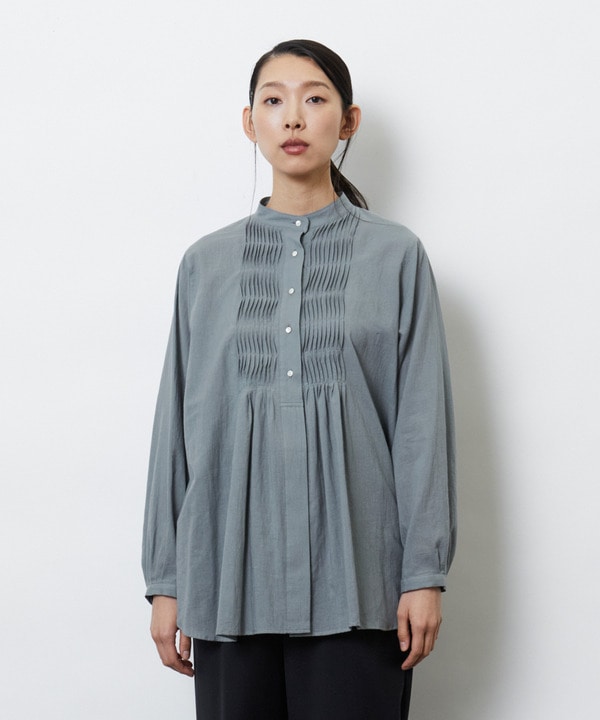 襟を立ててキリッと。キルティングコートは表生地がリネンなので見た目に軽く、着心地も軽いです◎経年カラーのネイビーはロワズィールらしいアンティーク感が魅力的です。