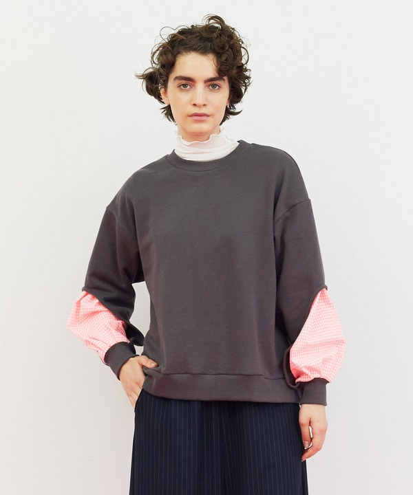 トレーナー×デニムスカートのシンプルなコーディネートもフラボアらしいデザインの入ったアイテムを組み合わせると、オンリーワンな印象に!