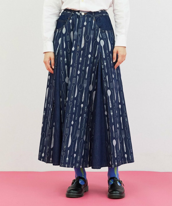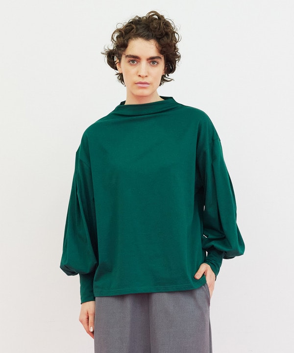 袖の形が特徴的なカットソーと、デニムスカートを合わせたコーディネート。一枚で着ても決まるカットソーは、春に大活躍するアイテムです。ウエストインして大人っぽく着てみました。