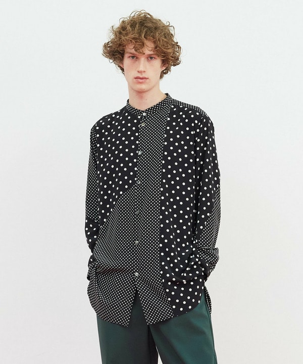 総柄のドットシャツにワイドシルエットのパンツを合わせてモードなコーディネートにしました。