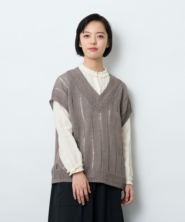 涼しげな和紙コットンベスト、1枚あると便利です◎春は長袖カットソーやブラウスに、夏は半袖シャツやノースリーブに。ベーシックなデザインは、色々なボトムやワンピースとコーディネートが楽しめそうです✨