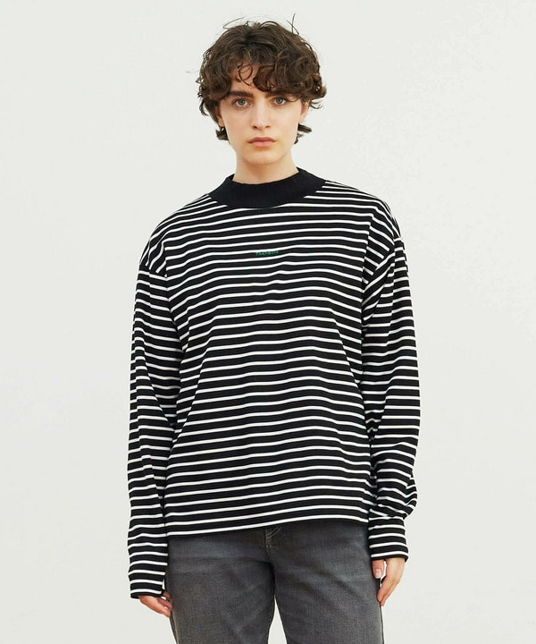 シャツの袖をロールアップして、インナーのボーダーを出すのがポイントです。