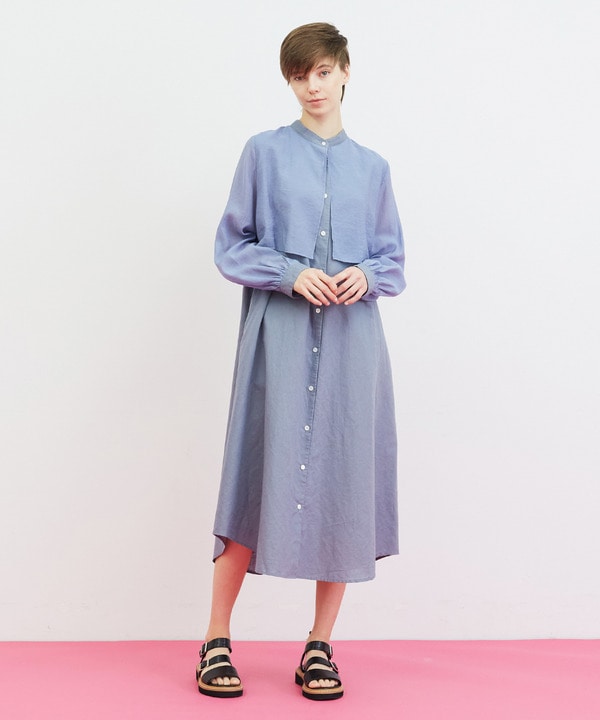ワンピースはリラックスしたAラインシルエットで、麻綿の涼しげな素材感。