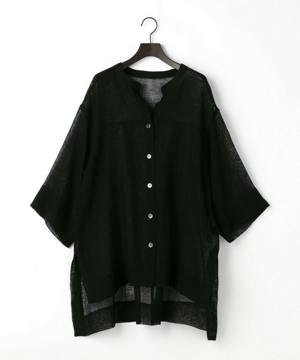 リネンのオーバーブラウスの抜け感や