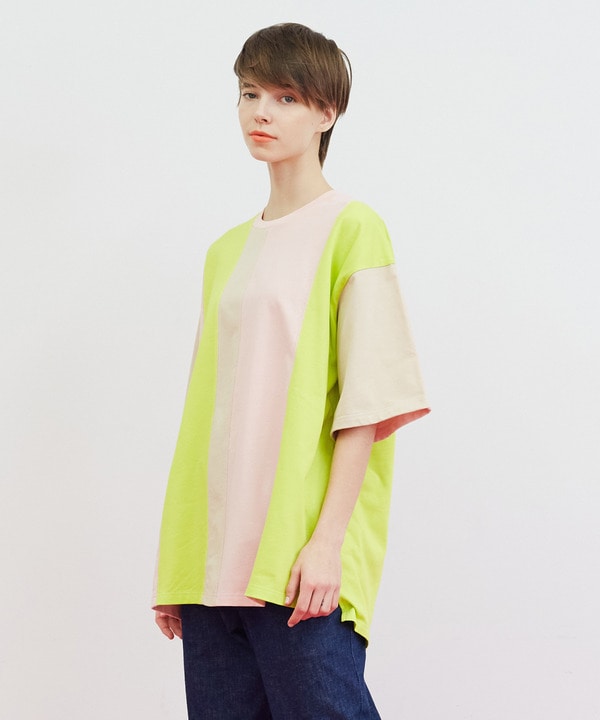 新作のデニムのセットアップです。こちらのパンツはユニセックスのアイテムです。ぱっと見ワイドストレートに見えますが、微かにテーパードシルエットとなっているのでスタイルアップ効果もあります。