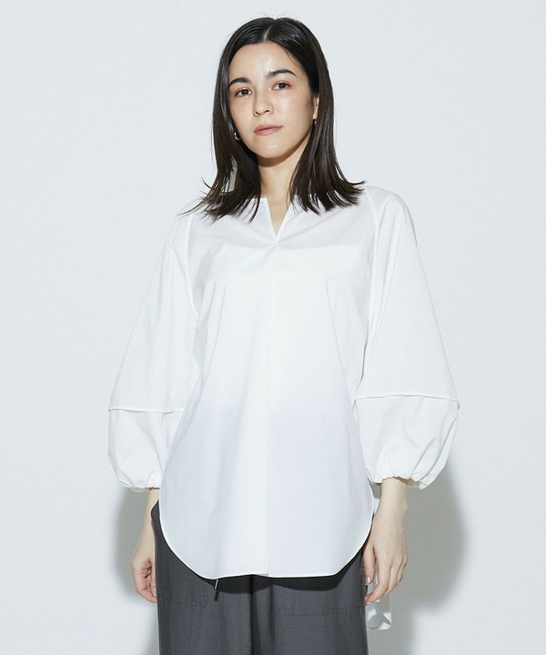 ハリのある素材感でボリュームスリーブの立体感を綺麗に