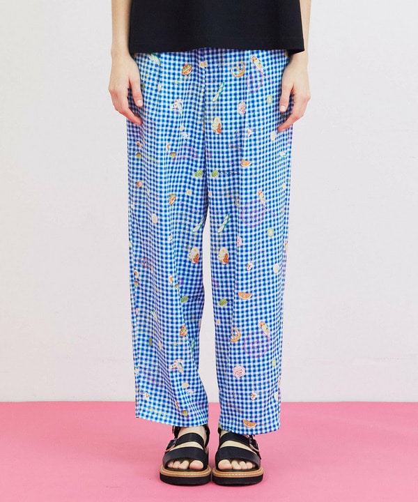 ニットとTシャツがドッキングしたカットソーを使った、夏らしいスタイル。薄いグレーと爽やかなブルーの組み合わせが涼し気な印象になりました。今シーズンのテーマ「PICNIC」をそのまま表現したようなコーディネートです。