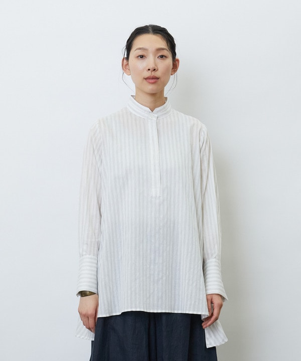 春夏らしい綿100の爽やかな1枚着ブラウス。薄いグレーのストライプが好印象!