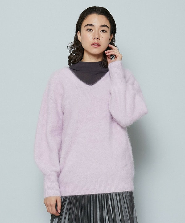 ふわふわの毛足の長いニットは、軽くて暖かいので