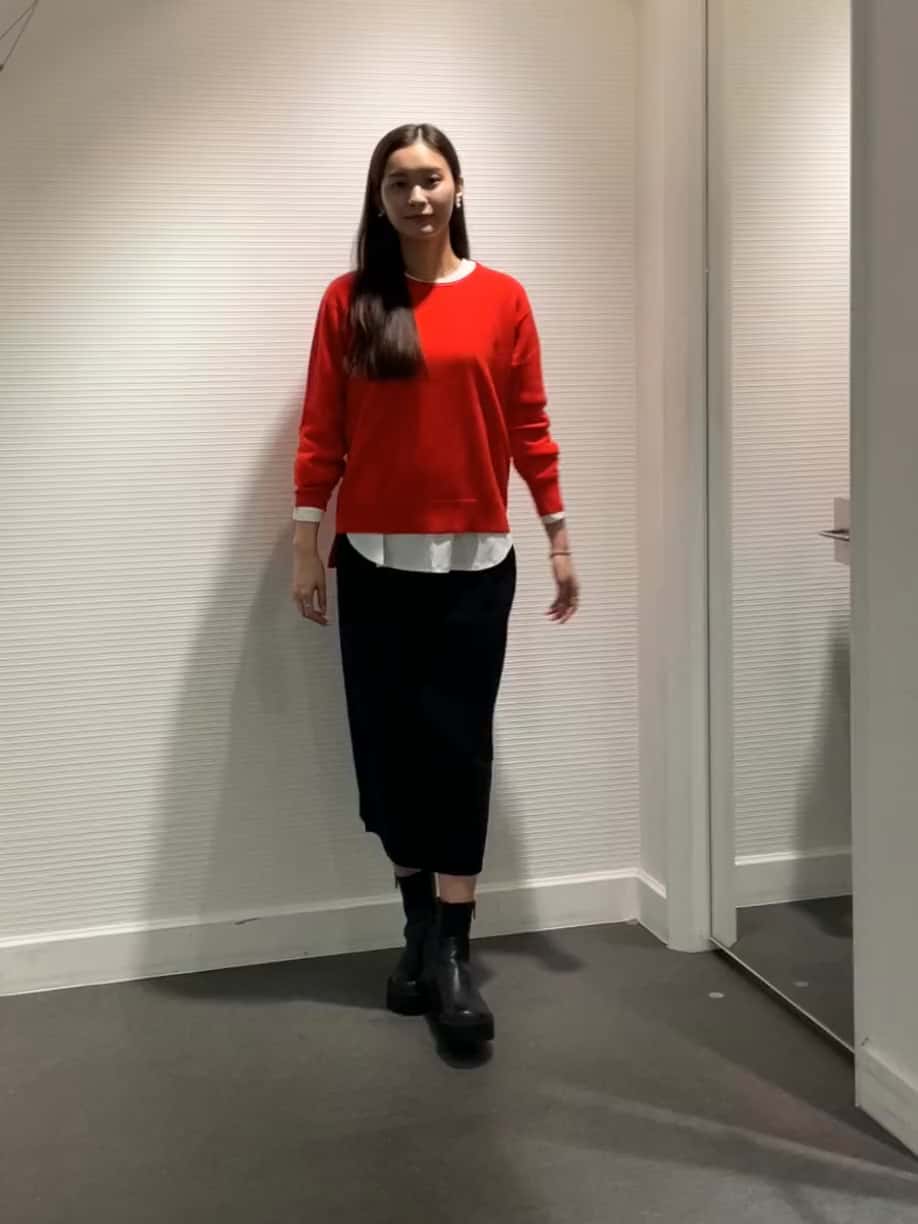 ボトムは履き心地抜群のニットスカートを合わせて