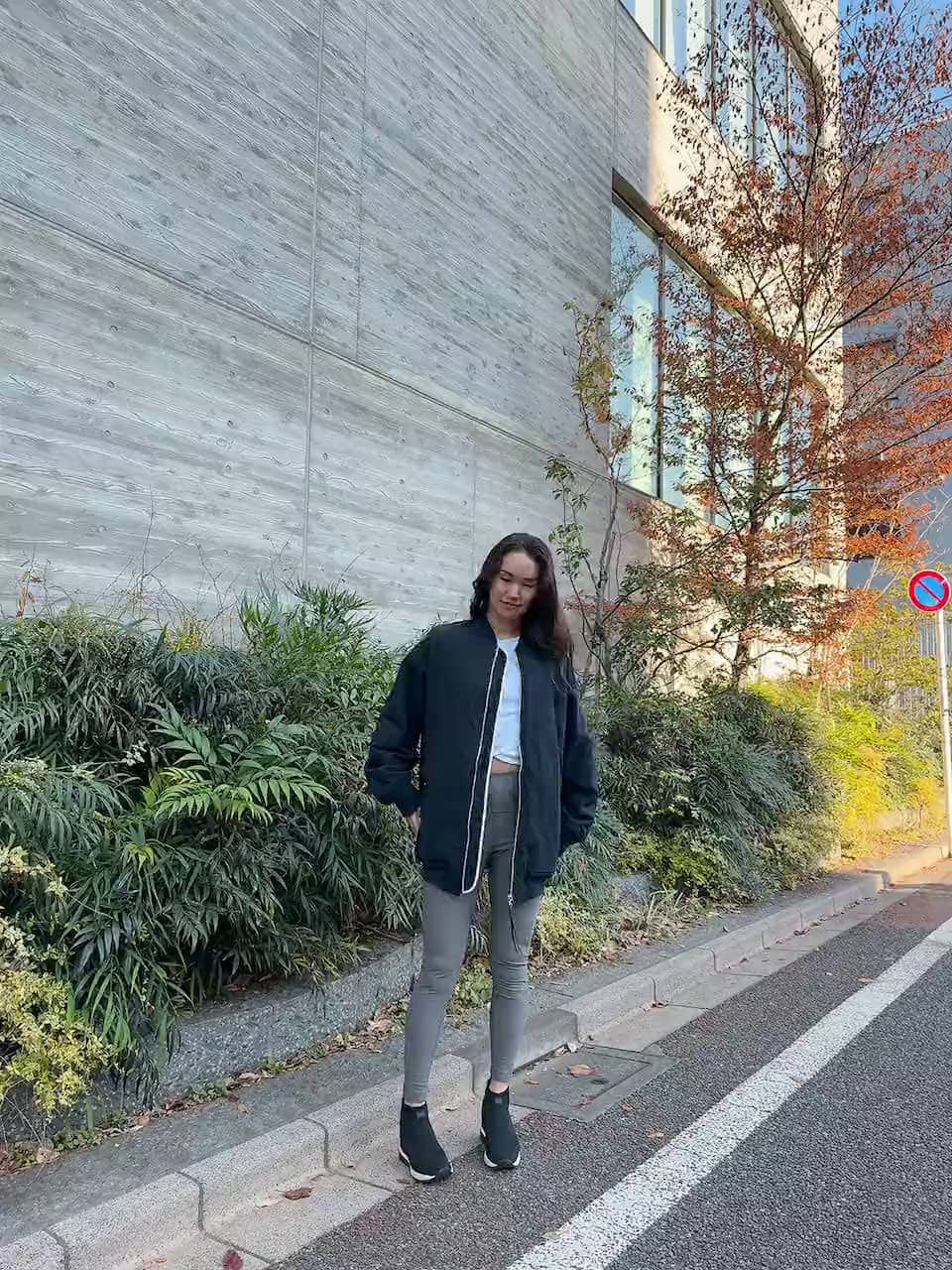 アウター:F(フリー)サイズレギンス:0(S~M)サイズレギンスコーデの日も、このMA-1を羽織るだけでスポーツカジュアルが完成。ヒップが隠れる丈なので、スタイルアップもできて、温かく過ごせます。
