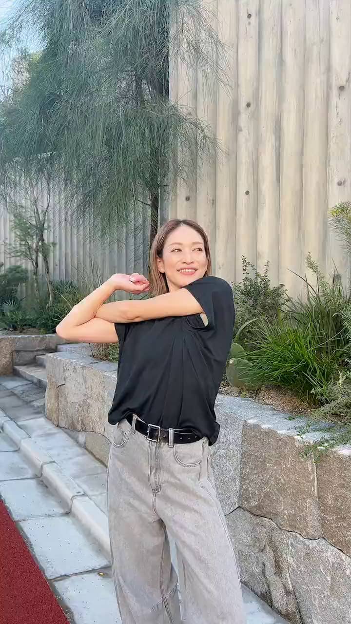 トップス:F(フリー)サイズパンツ:私物柔らかいく肌触りのいい素材な上に、吸汗速乾だから、真夏でも快適!ヨガウェアはもちろん、デニムに前だけインすれば、すっきりと着られます。