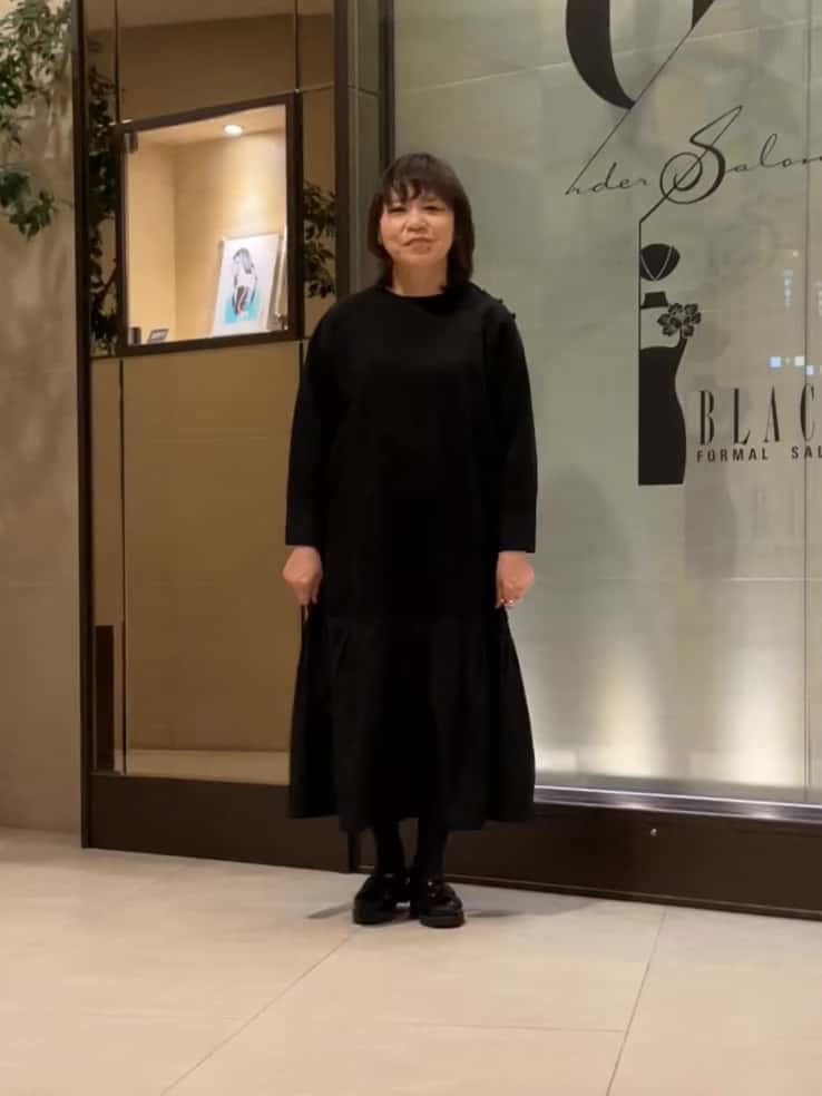 ドッキングワンピース。裾のフレアがシンプルなブラックワンピースの