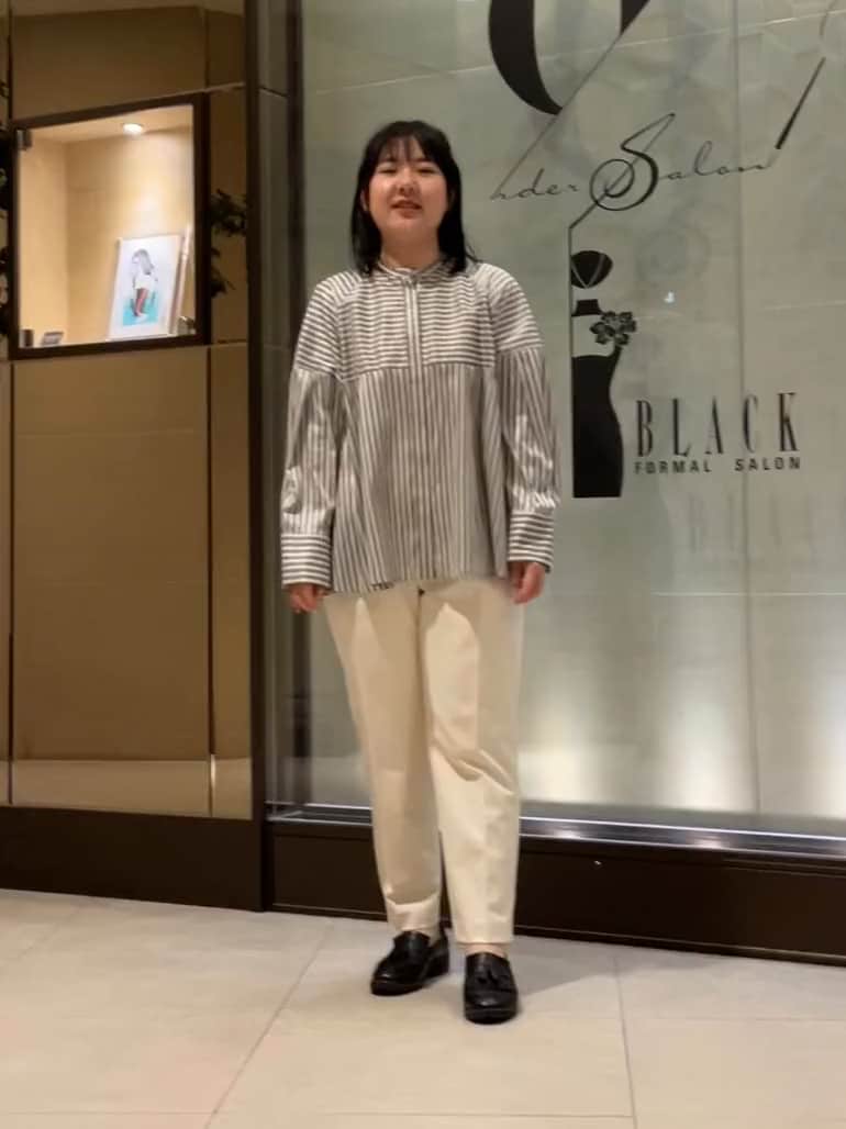 ストライプの柄変化もアクセントになったボリュームブラウス。
