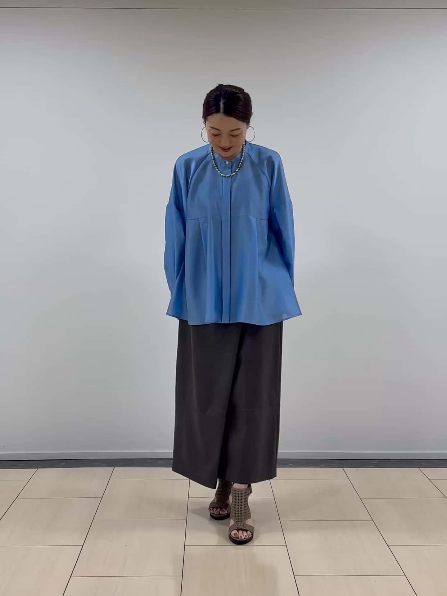 ブルーが爽やかな春にぴったりのボリュームブラウス。