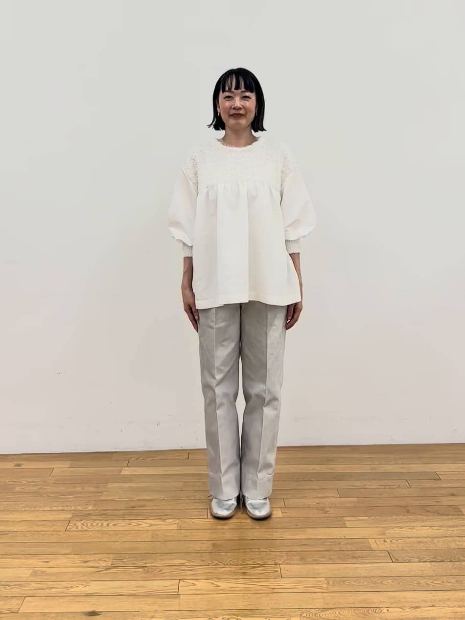 下見のギャザー部分と、袖のギャザー部分に布帛を使用したドッキングブラウス。