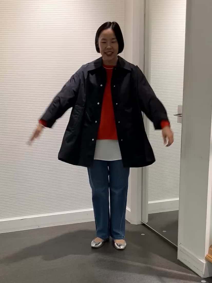 気になるヒップがちょうど隠れる着丈なので、ボトムを選ばずにサッと羽織れます。