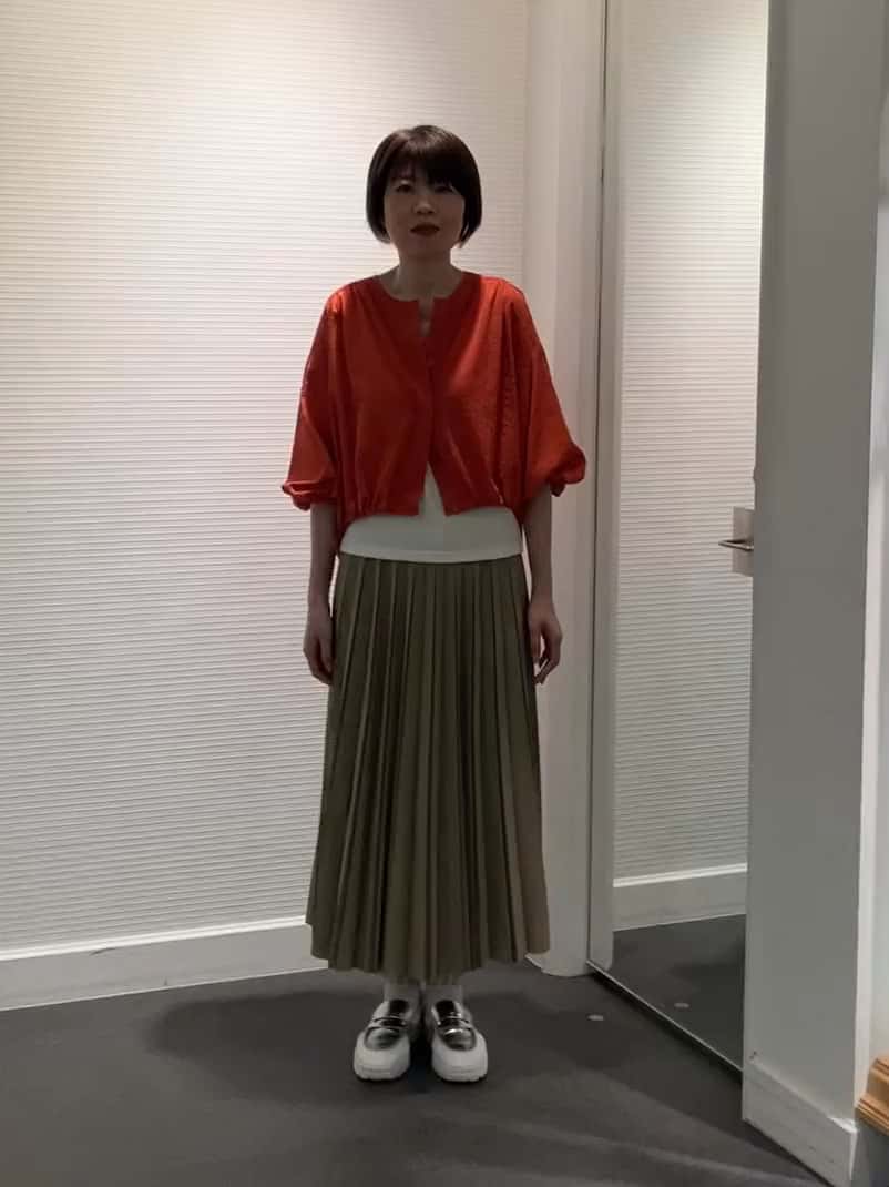 フレアスカートやワイドパンツとの相性が良く、前あきなので