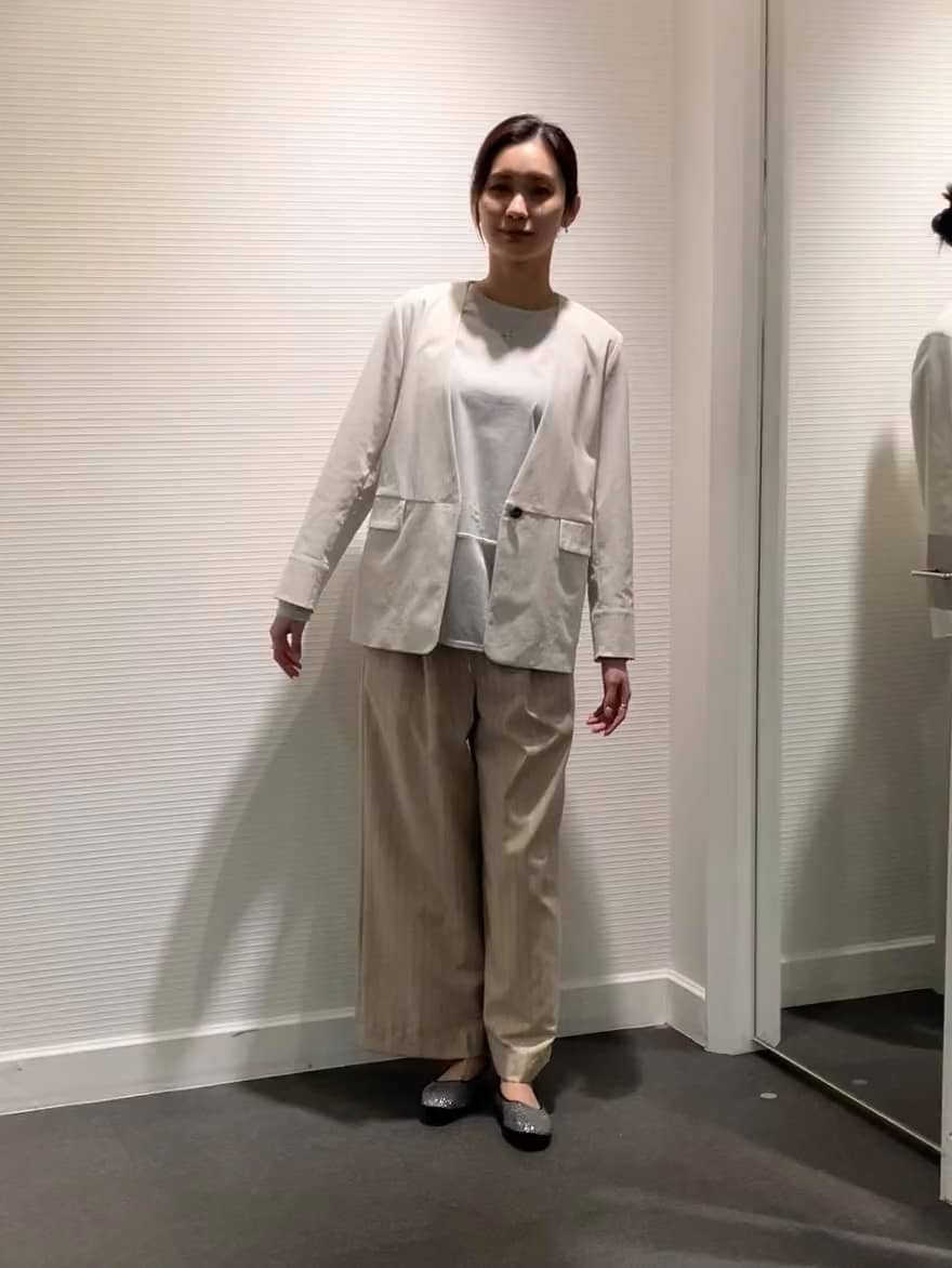 お仕事着としてもおすすめのきちんと感のあるノーカラージャケット。