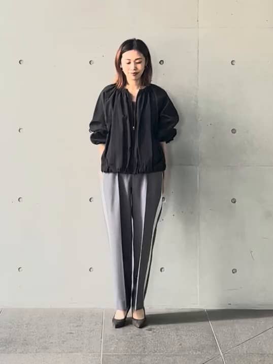 スポーティさを取り入れつつ、シックな素材と色目なので、きれい目に着こなして