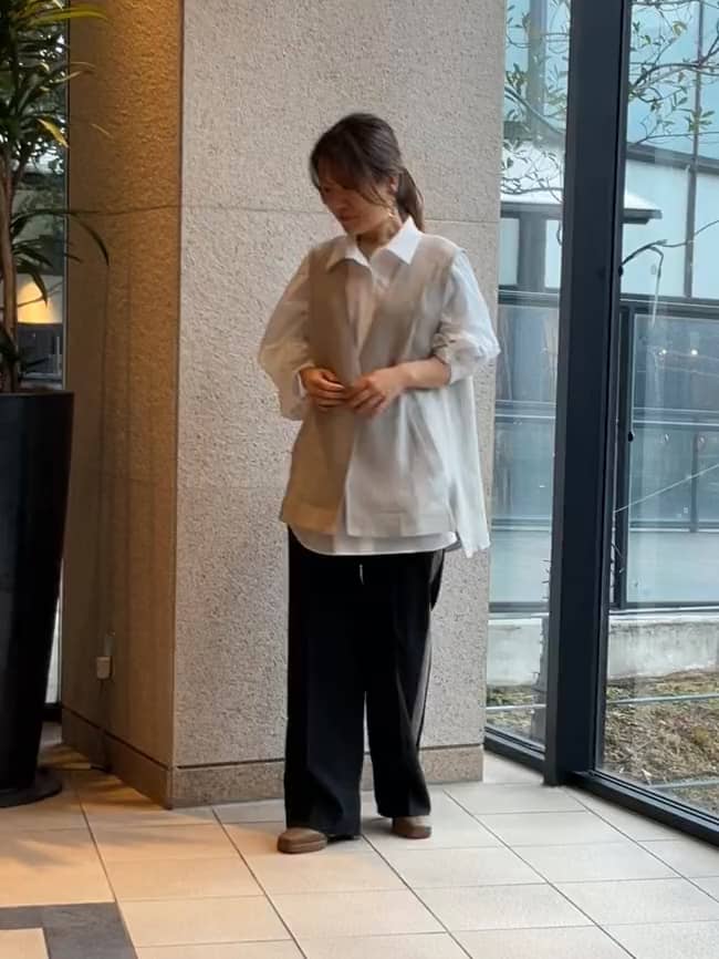 ボリュームスリーブのブラウスにジレ―を羽織るだけで、