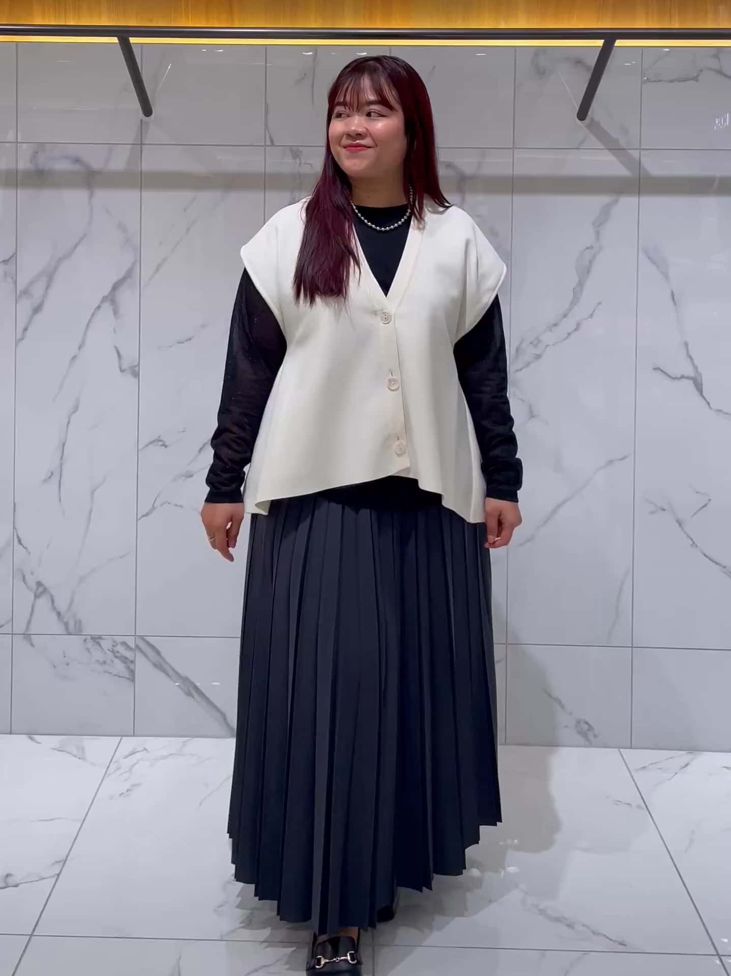 タフタのプリーツスカートにニットジレを羽織ってみました。