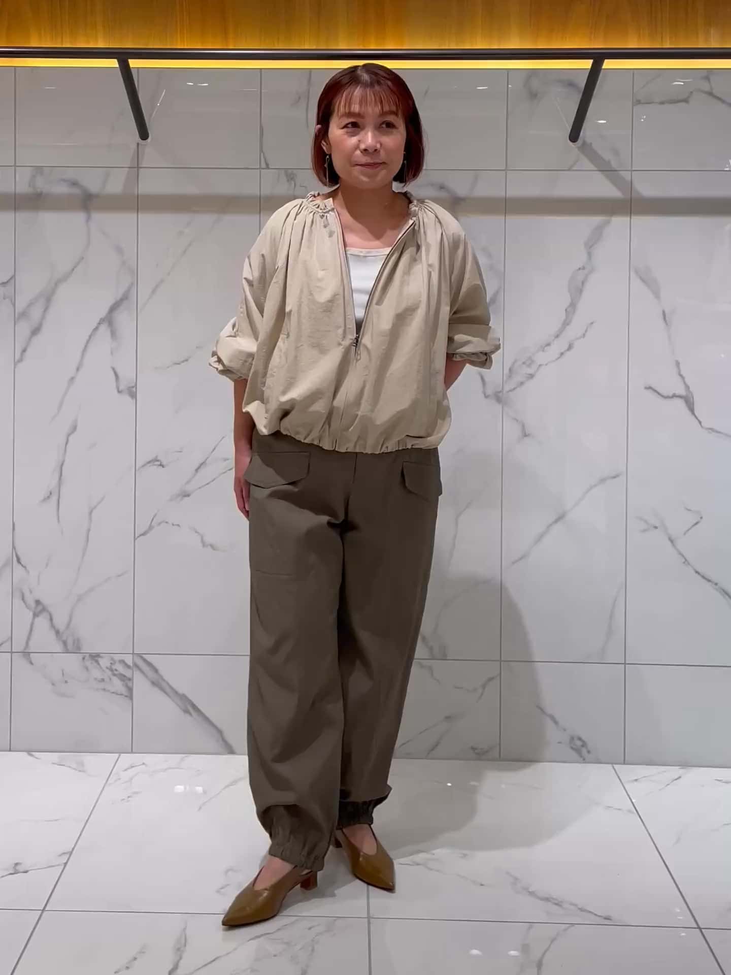 トップスはコンパクトなジップブルゾンを合わせてバランスよく着こなしていただくのが