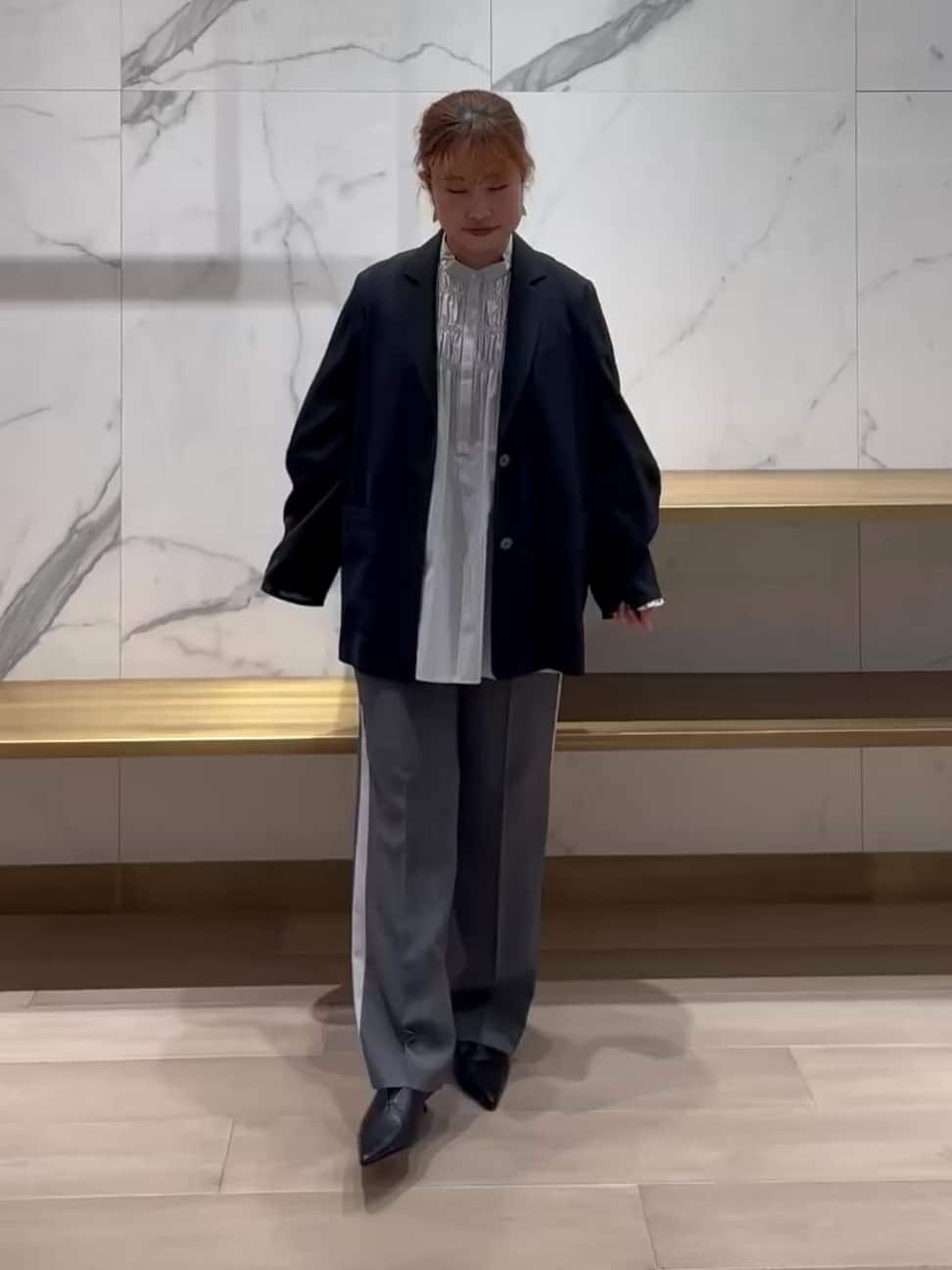 インナーにはリアルばいしたシャーリングブラウスを合わせました。