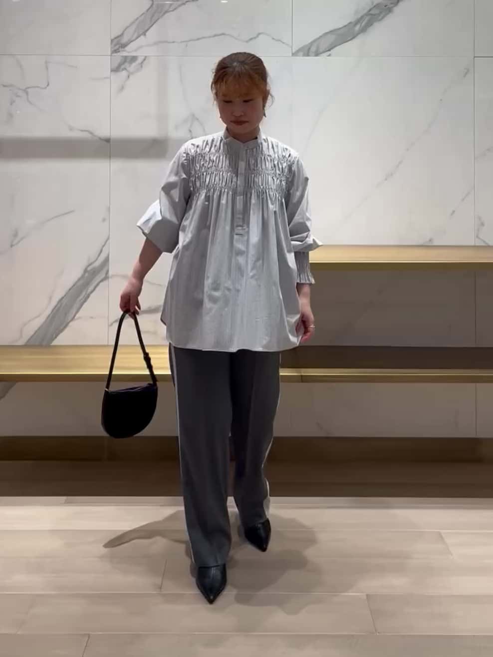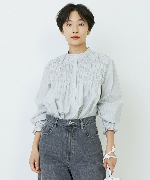1枚でもジャケットのインナーとしても、映えるシャーリングブラウス。
